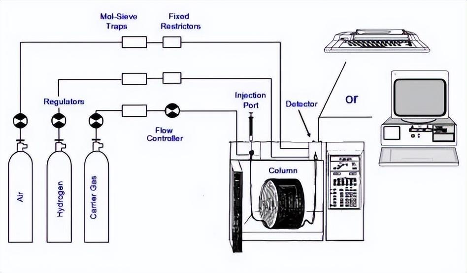 氣相色譜的活意向為惰性氣體,氣-固色譜法中以表面積大且具有必定活性的吸附劑作為固定相。當多組分的混合樣品進入色譜柱后,因為吸附劑對每個組分的吸附力不同,經過必定時刻后,各組分在色譜柱中的運行速度也就不同。吸附力弱的組分簡單被解吸下來,最先脫離色譜柱進入檢測器,而吸附力最強的組分最不簡單被解吸下來,因此最終脫離色譜柱。如此,各組分得以在色譜柱中相互分別,次第進入檢測器中被檢測、記載下來。氣相色譜儀器框圖如下圖所示: